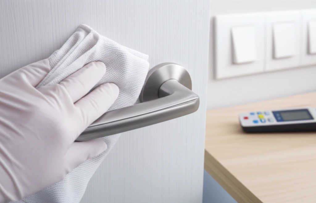 - 공용 가전: 리모컨, 태블릿 등은 비닐 랩을 씌워 사용하거나 사용 직후 반드시 소독 티슈로 닦아야 합니다.